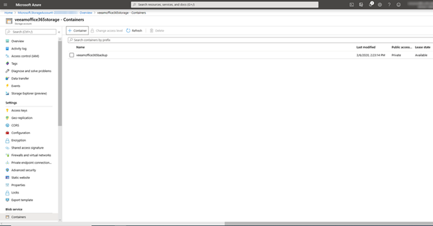 On the Access keys page, copy Storage account name and key of key1, we need them for Veeam storage repository settings later.