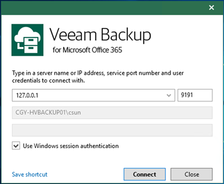 Open Veeam Backup for Microsoft Office 365 connect to…. Console.