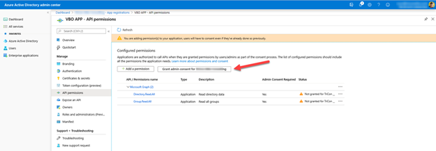 On the Configured permissions page, click Grand admin consent for XXXX.