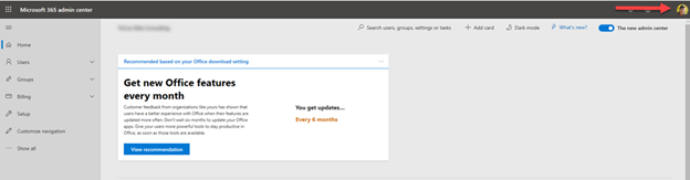 Please follow steps to configure a user account for Modern authentication, login to Office 365 portal, click Admin.